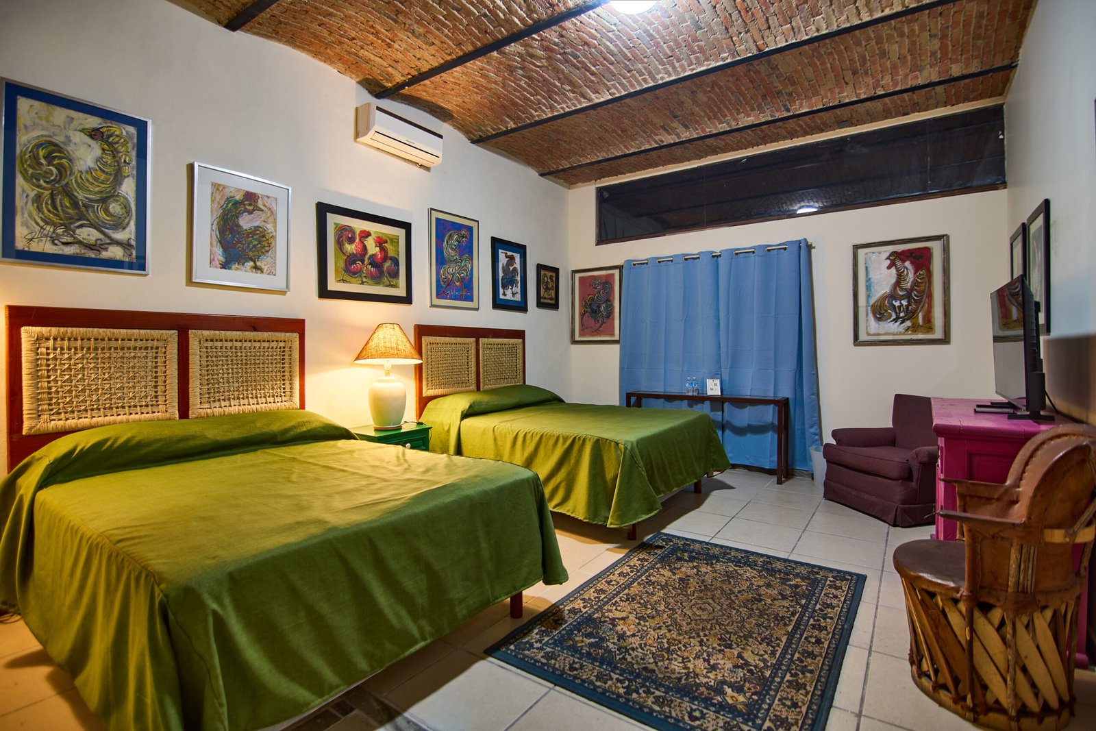 Ubicada en la planta baja para tu total comodidad, esta habitación cuenta con dos camas Queen Size, ideales para un descanso profundo tras un día explorando las galerías de Tlaquepaque. Un refugio de luz, espacio y cultura.